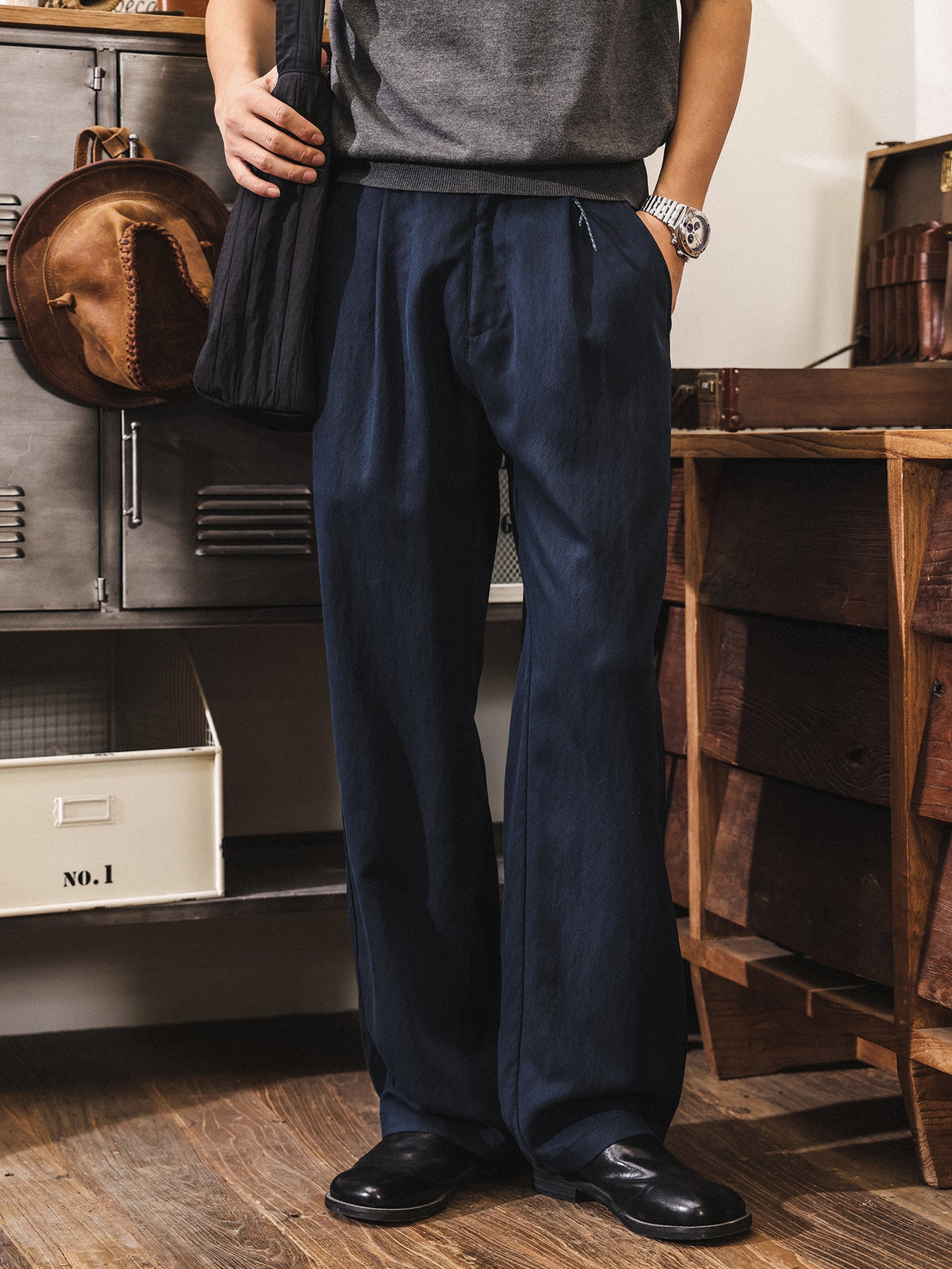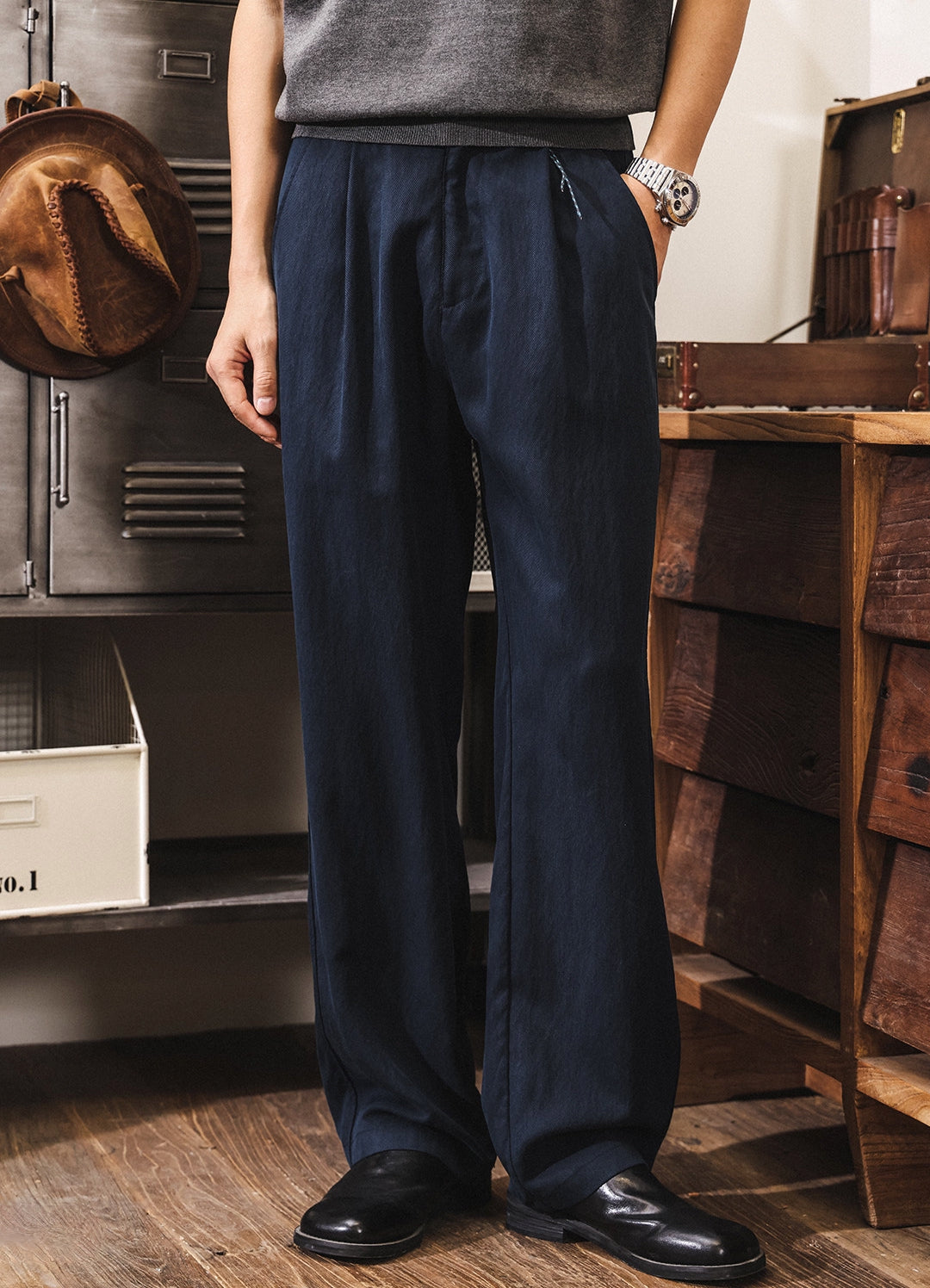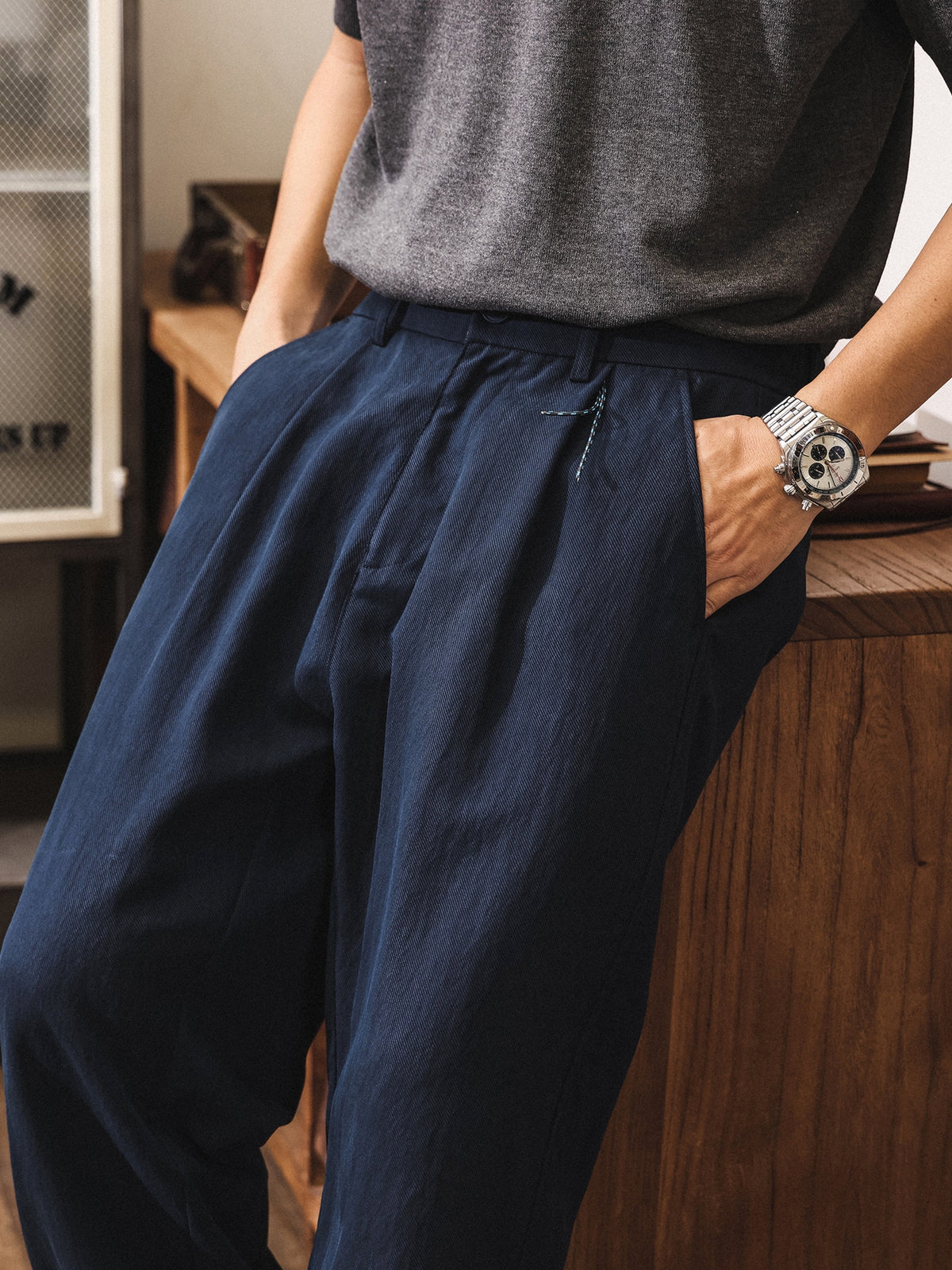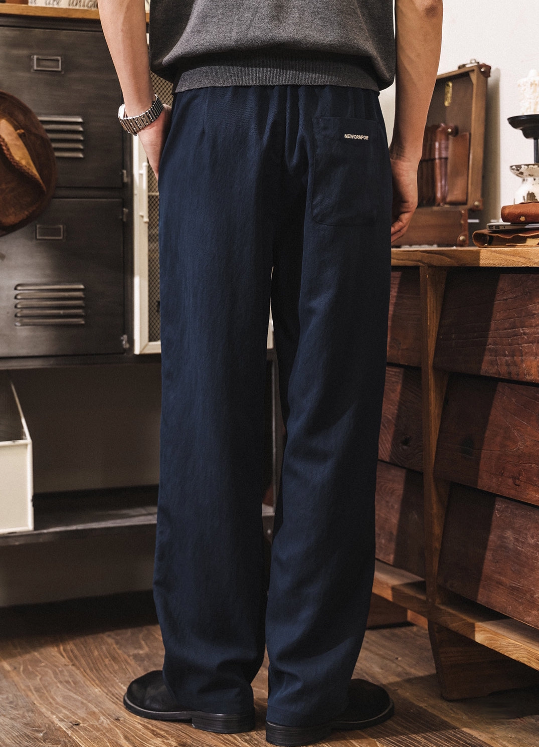 92% Lyocell Straight Leg Casual Pants - NAVYBLUE