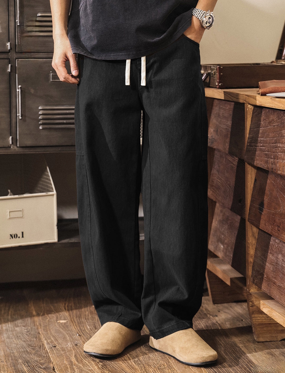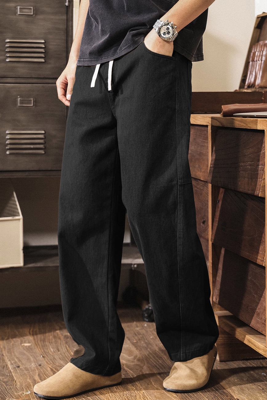 Retro Cargo Wide Leg Denim Pants - BLACK